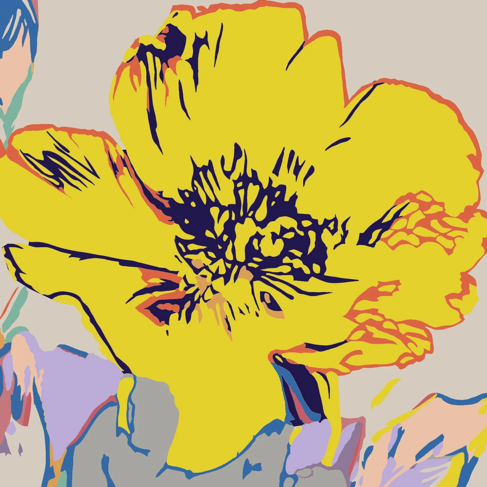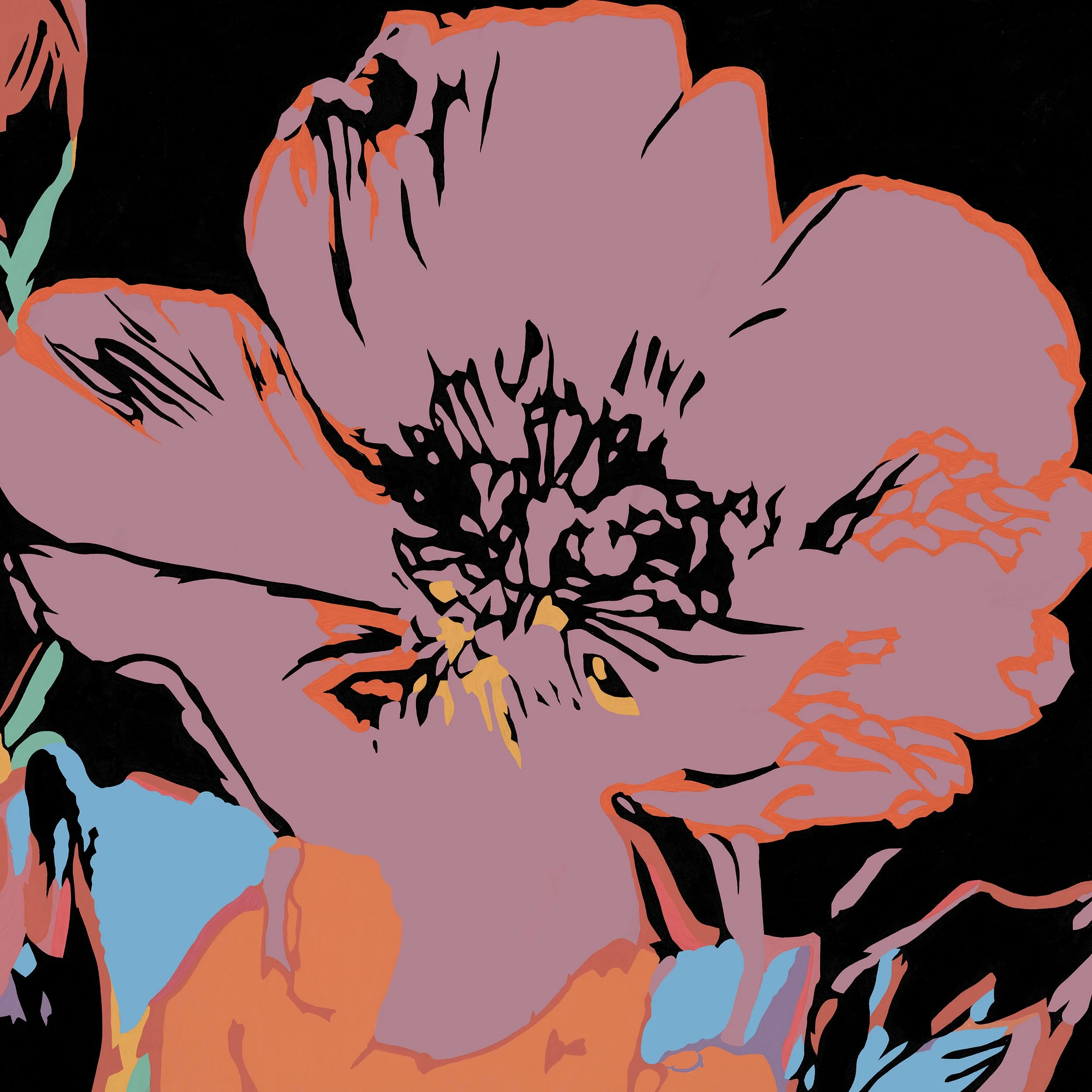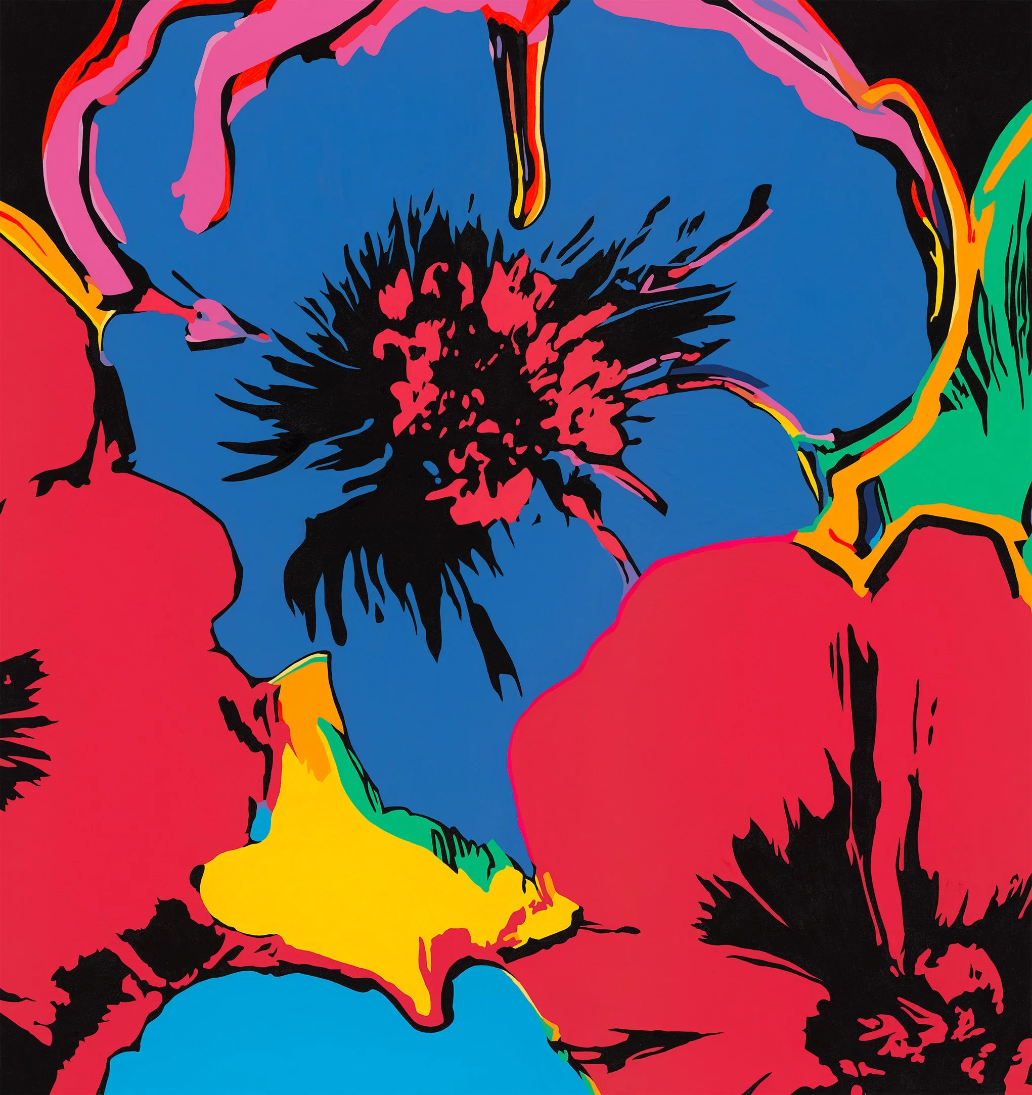 LARGE FLOWERSA NEW SERIES OF PAINTINGS 2026 LARGE FLOWERS NO.12 VARIANTAcrylic on canvas.2026 Ben Allen’s recent work shifts away from direct cultural iconography toward a more distilled visual language—where organic forms are pushed through the same layered, disruptive processes that once framed pop imagery.