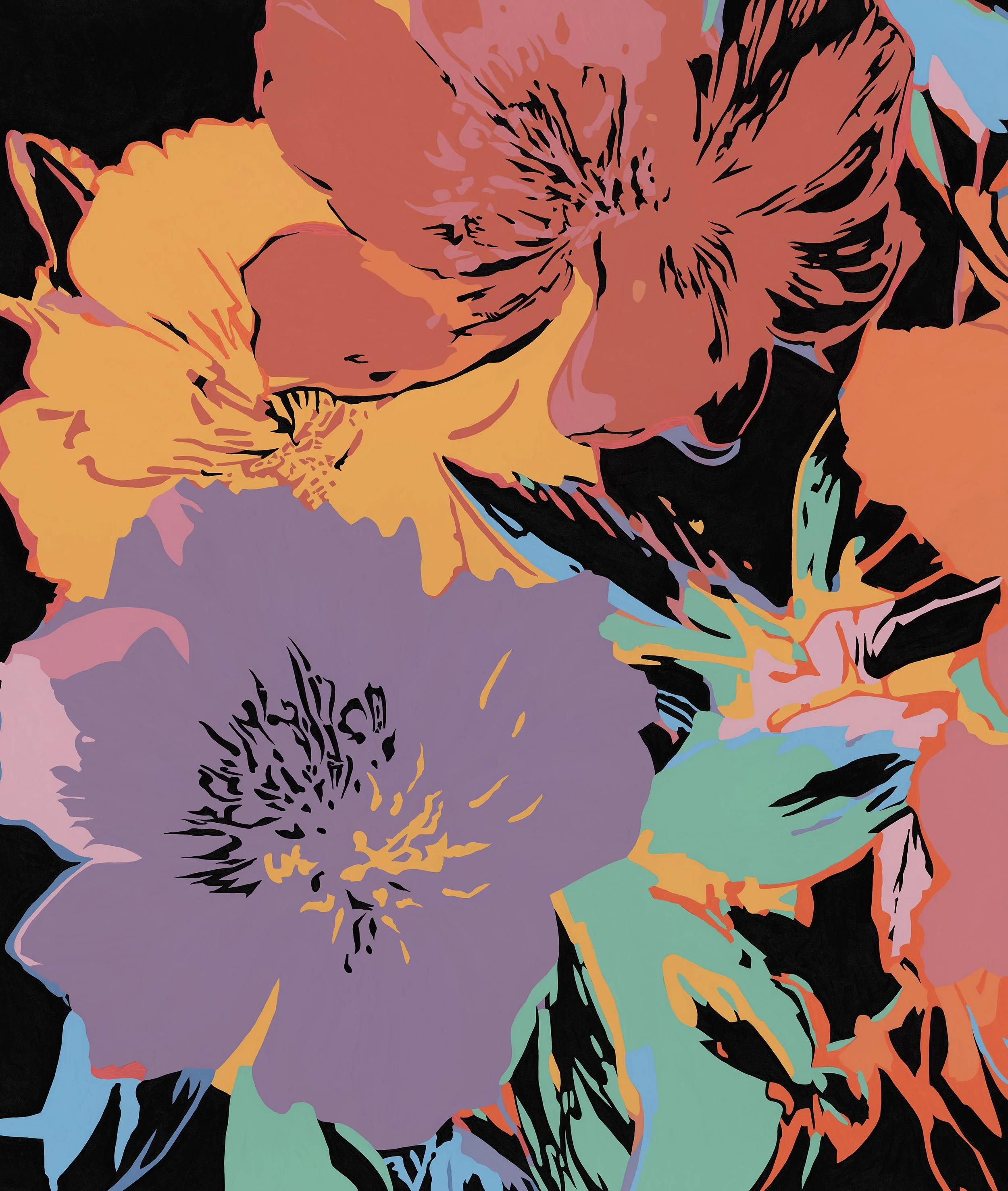 For Allen, flowers are never passive decorative elements. They become living metaphors for the cycles of human experience: growth, vulnerability, resilience, and renewal. By amplifying scale and intensifying color, he transforms familiar forms into conduits of emotion. A petal becomes a gesture; a stem becomes a line of movement; a bloom becomes a moment of awakening.